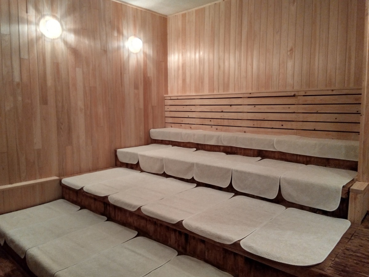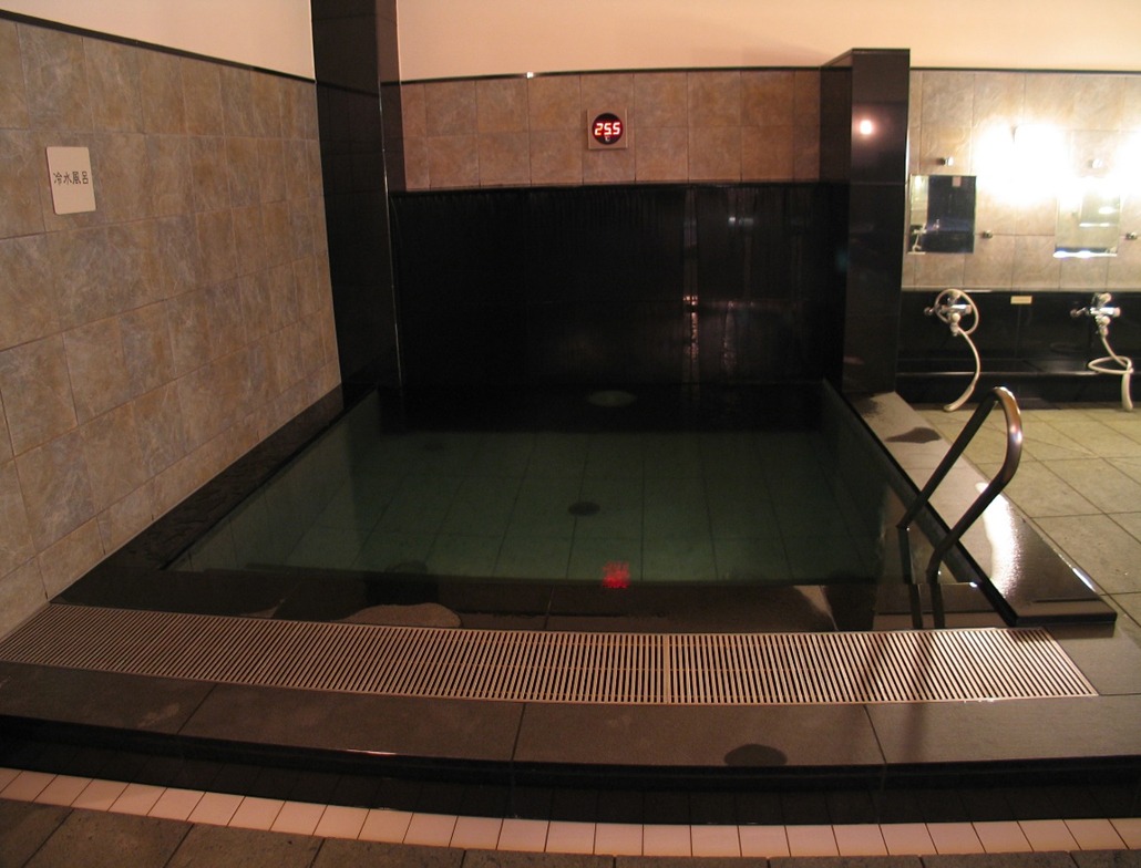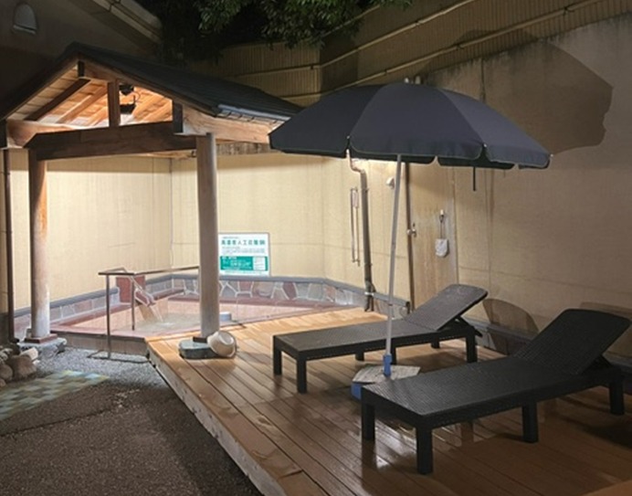 大勢入れる広々遠赤外線サウナ。90?程の深さのある水風呂(男性)。広い露天ととのいスペース。