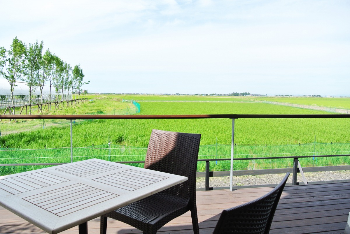 高い空の下、角田山を背景に田園の大パノラマを体で感じ、味わう。太陽の光のもと、豊かな大地と水と共に、古くから農業が営まれて来た新潟市西蒲区。そんな場所に「そら野テラス」はあります。 併設の田んぼでは、田植え、稲刈り体験を毎年開催。