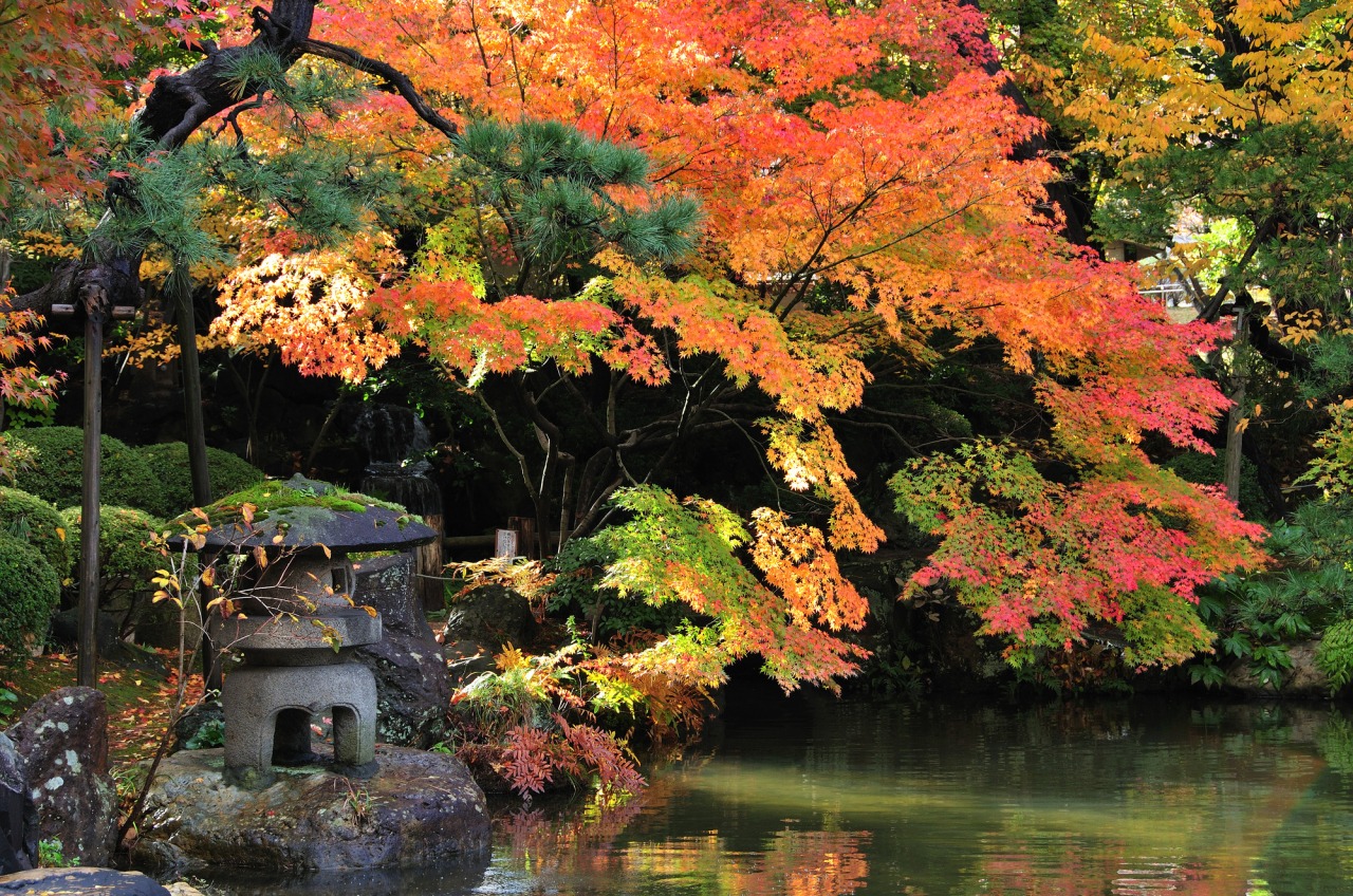 春の桜、夏のハス、秋の紅葉、そして冬の雪景色と四季折々の彩りが訪れる人を楽しませます。
