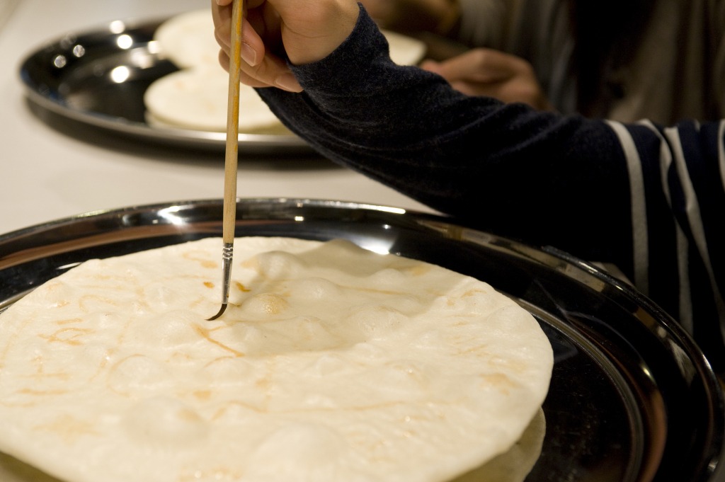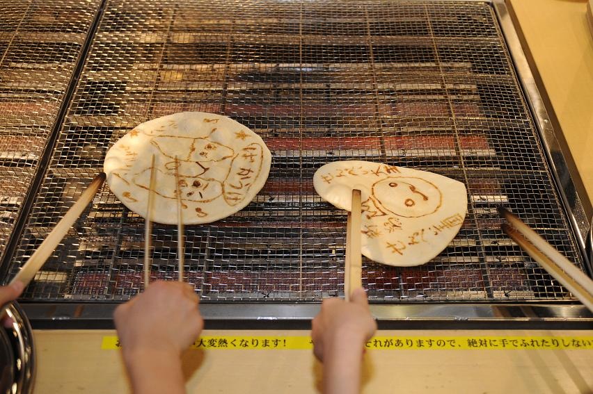 体験では数種類のコースから自分にあった体験が選べます。おせんべいを焼いたり、焼いたおせんべいに絵を描いたり、味をつけたり…旅の良い思い出になりそうです。中でも超特大絵描きせんべい体験1,500円が人気。