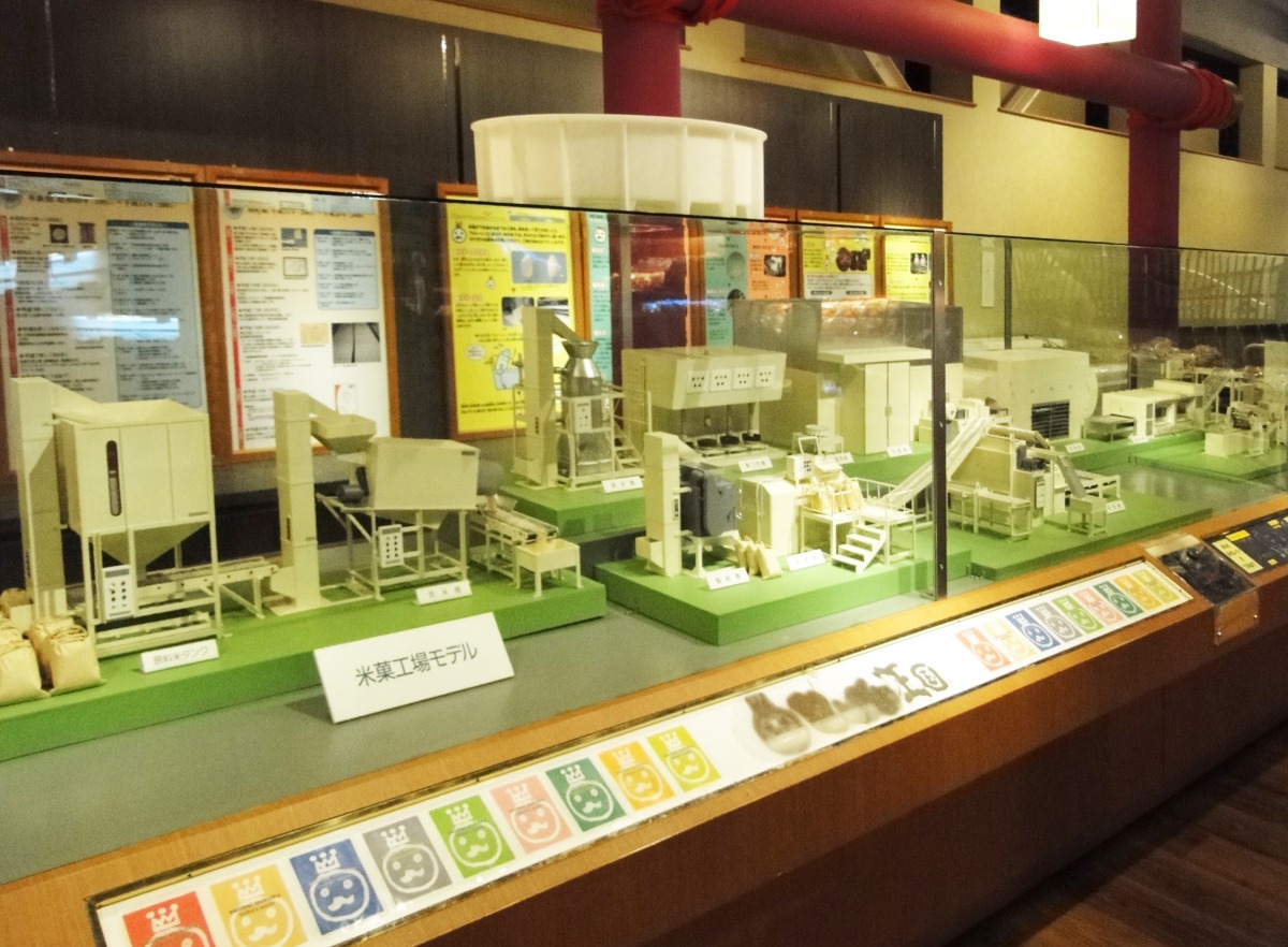 新潟米菓の歴史を知ることができる体験館で、見学通路からは職人さんが炭火でおせんべいを焼く姿を見ることができます。