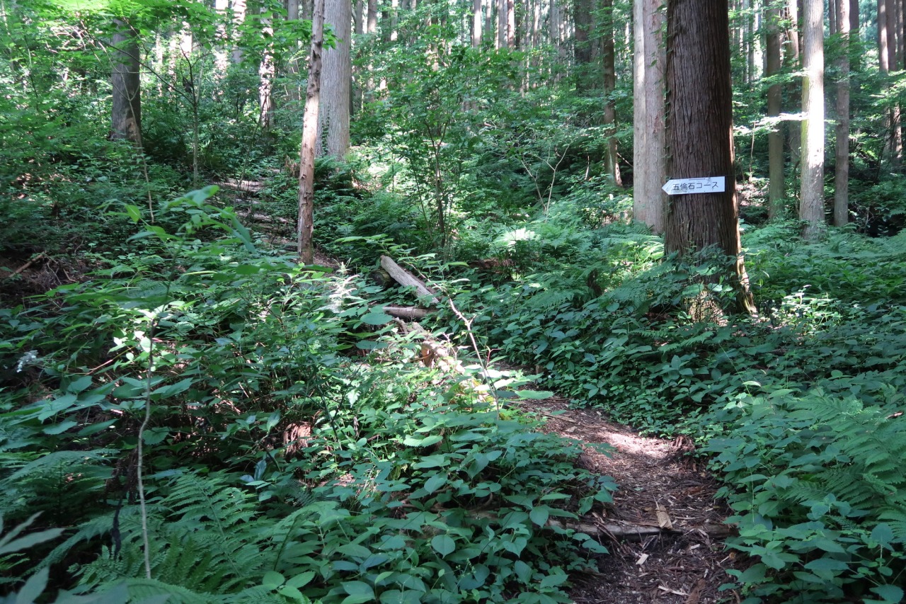 五りん石登山口には弘法清水、五りん滝があり、松・杉の壮大な植林地帯をぬけて山頂につく。