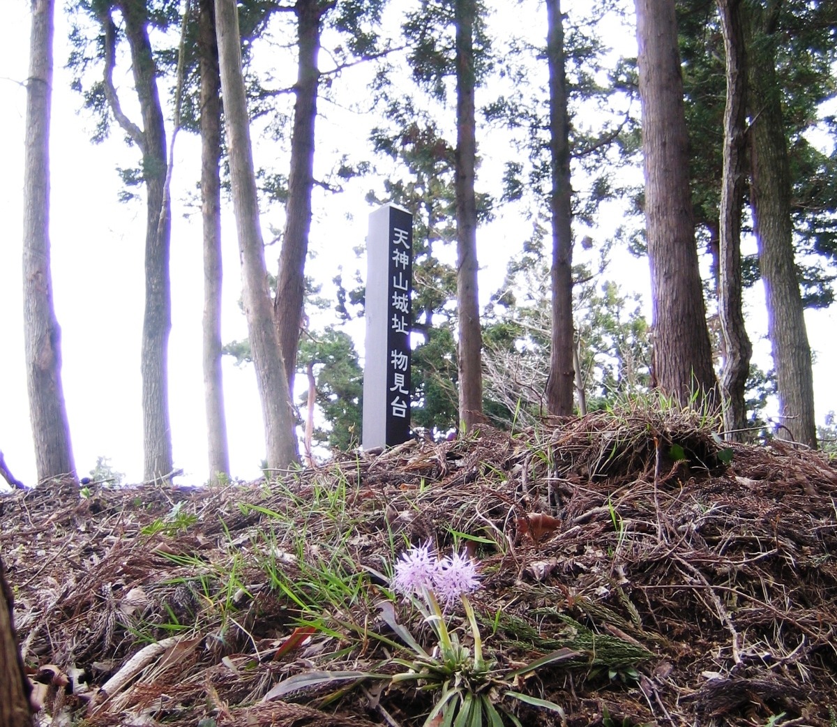 天神山城は、西蒲区石瀬と岩室温泉の境にそびえている海抜234mの堅固な山城で、中世の城郭跡がほぼ完全な姿が残っている。南北に走る尾根には大小7本の空壕が配され、その頂上に本丸があり、枯渇しない水源、瓢箪池がある。