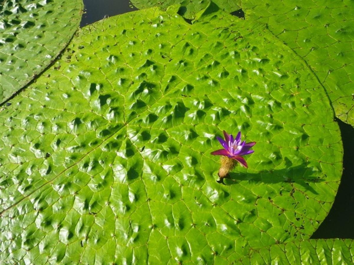 日本の希少植物であり、紫紅色の可憐な花を咲かせる。葉の大きさは、直径1.5~2mにもなる。福島潟はオニバス自生の北限地になっている。
