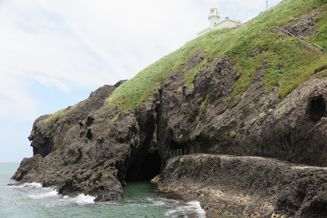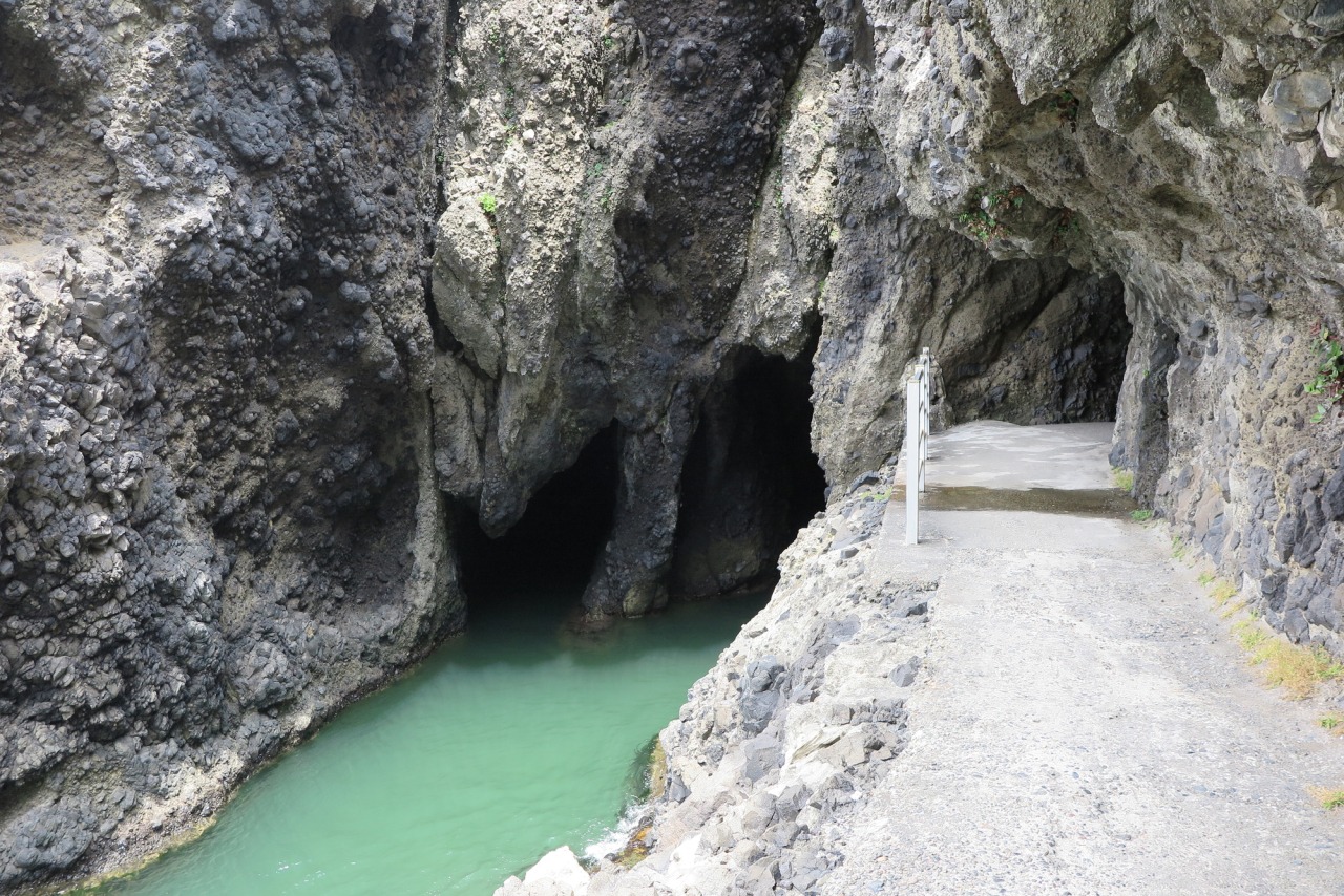 大小二つの洞穴があり、向かって右が奥行28m、幅4~5m、天井の高さは海面から6.6~2.5m。左側は奥行14m、幅2m、天井の高さは海面から4~5m。