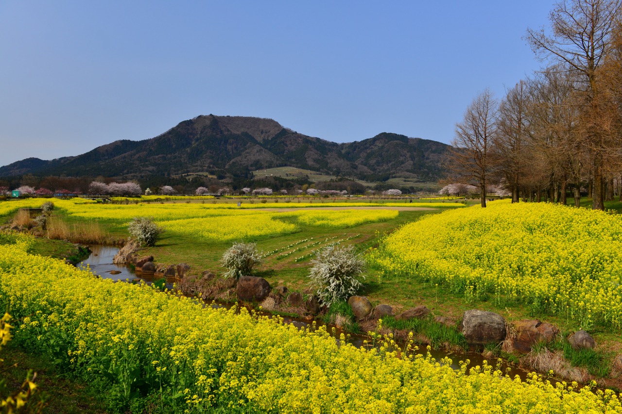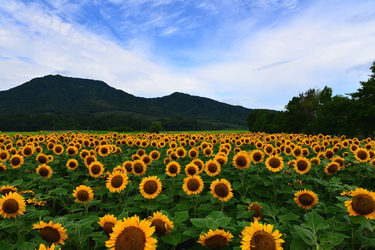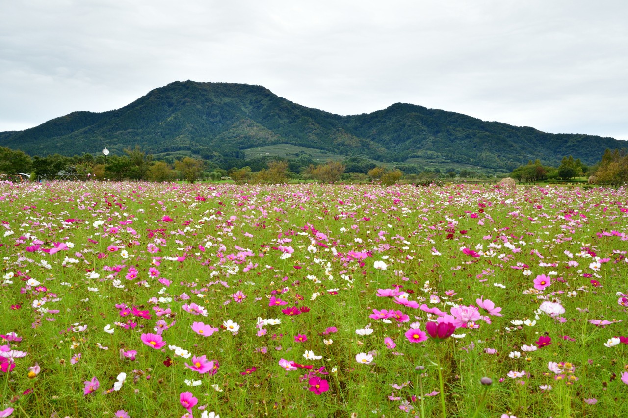 雄大な角田山を眺めるなら上堰潟公園もおすすめ。春は桜や菜の花、夏はひまわり、秋はコスモスと季節の花がきれいな彩りとともにそびえたつ山を引き立てます。のんびりと散策を楽しみながら、美しい景色を堪能してみてはいかがですか。