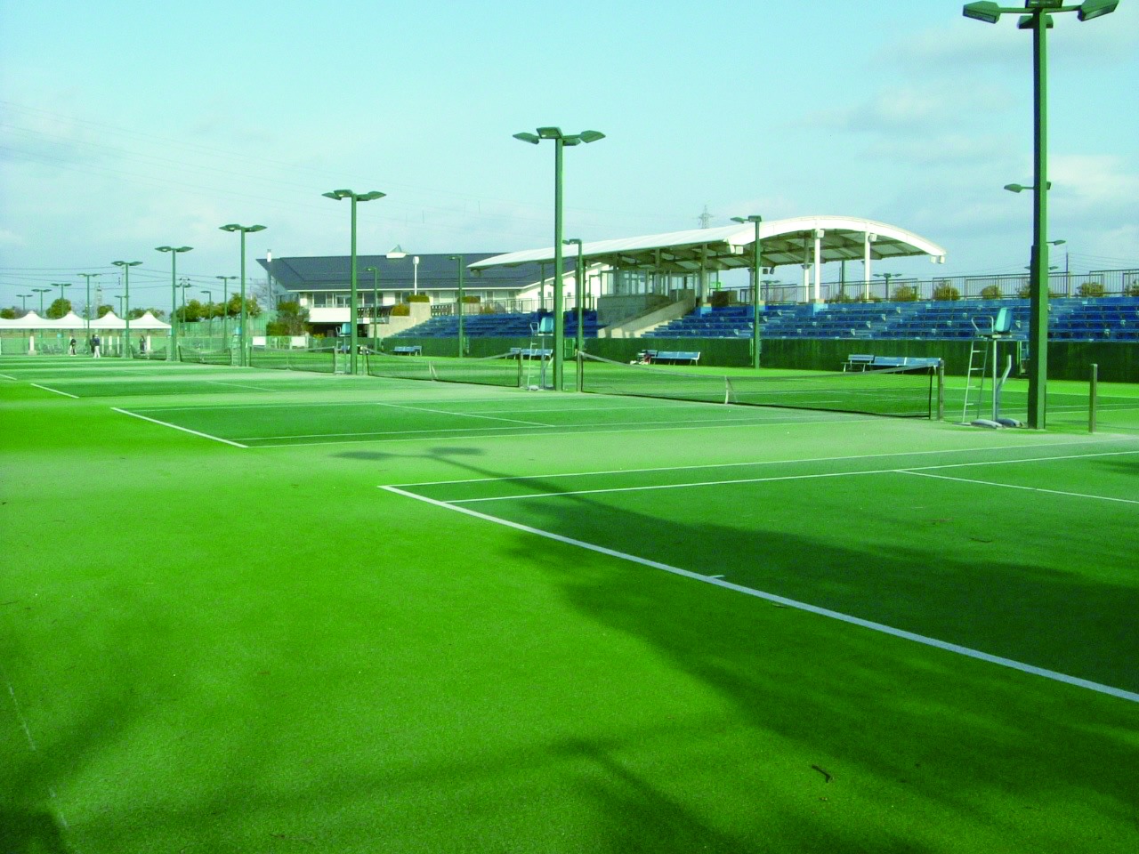 ●テニスコート16面(砂入人工芝、ナイター照明完備)