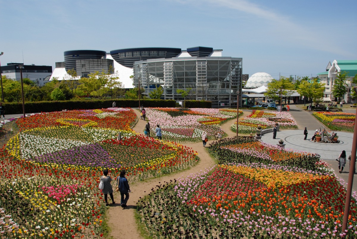 チューリップガーデンは、毎年テーマを変えて33品種・50,000本のチューリップで表現します。色とりどりの春のガーデンをお楽しみいただけます。