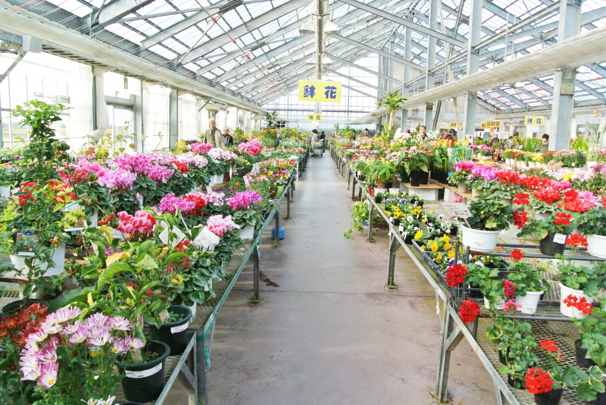 ガラス温室では、鉢花、花木を中心に、花壇苗、・観葉植物・洋ラン・果樹苗木・庭木・盆栽・園芸資材等を販売。花夢里にいつは買い物目的だけではなく、館内を眺めているだけでも新発見があり、とっても楽しい所です。
