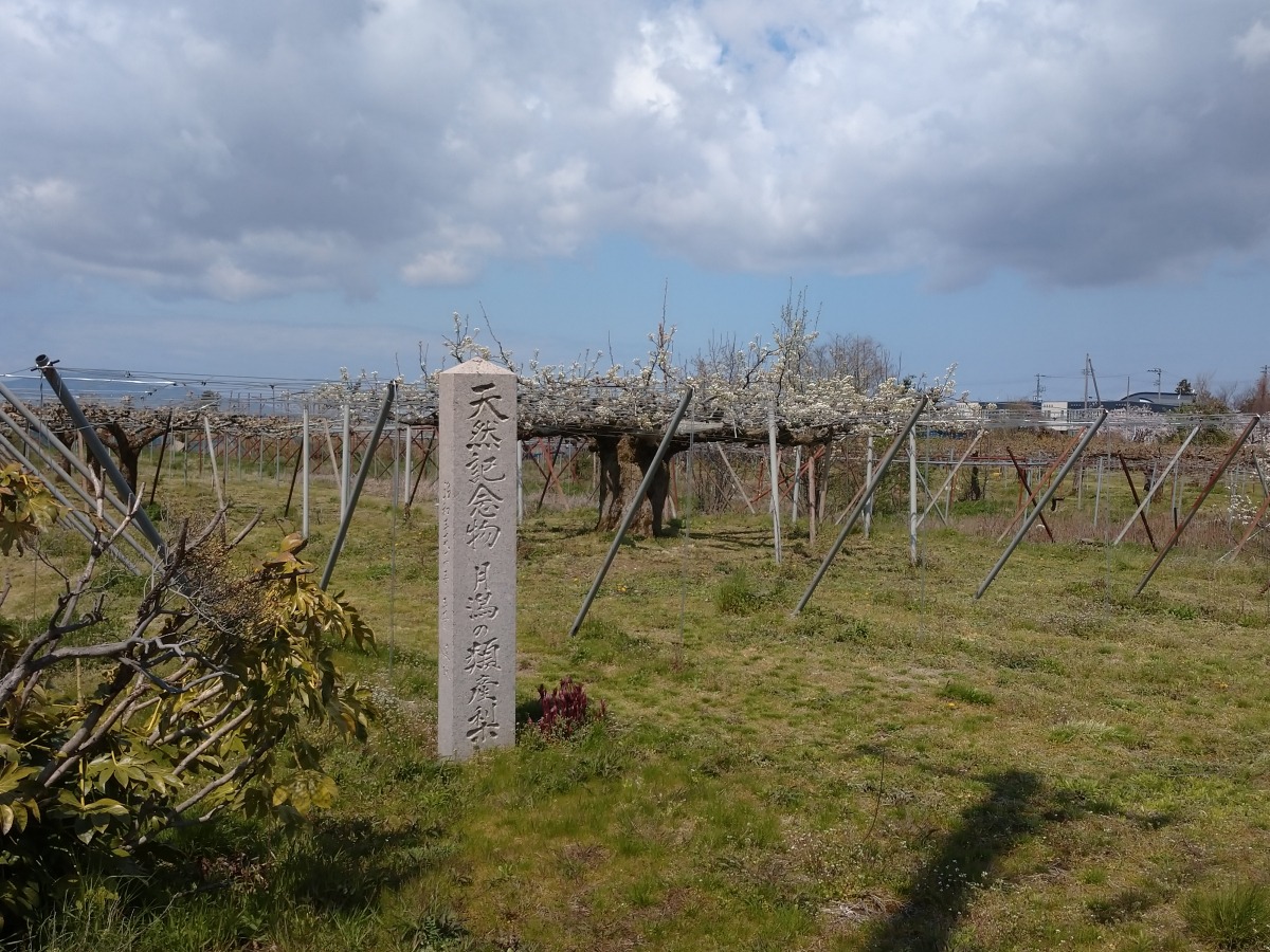月潟の梨栽培は、文化年間(1804~17)大別当深沢剛蔵氏が上総国より梨苗「類産」を求めて始まりました。その原木が今も深沢家の梨畑にあり、国の天然記念物に指定されています。