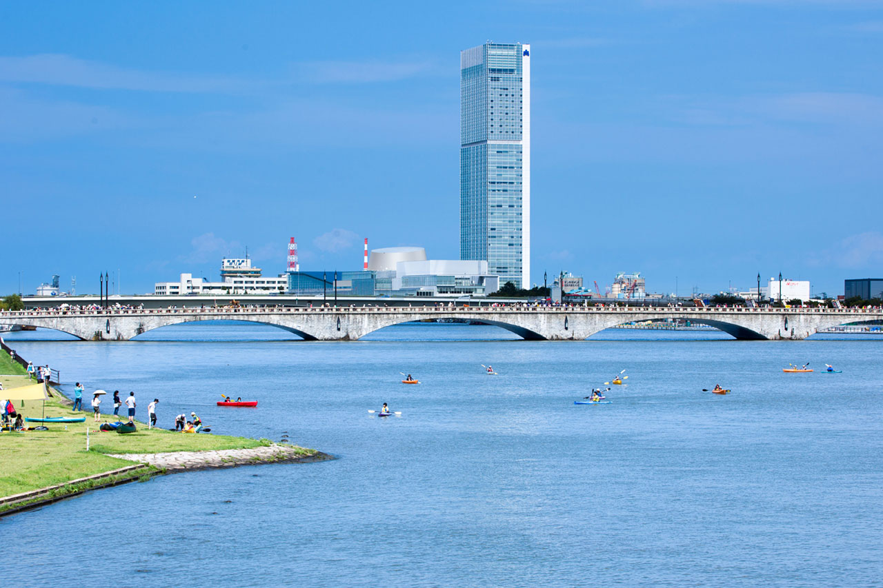 水の都と称される新潟市では、市街地に流れる日本一の大河信濃川や、日本海の景色など自然と融合した街並みを楽しめます。朝の時間帯は人が少なく景色を独り占めできるので静かに景色を楽しみたい人には最適。今回は田中さんとシェアサイクルで巡る新潟らしい景色に出会えるコースを紹介します。