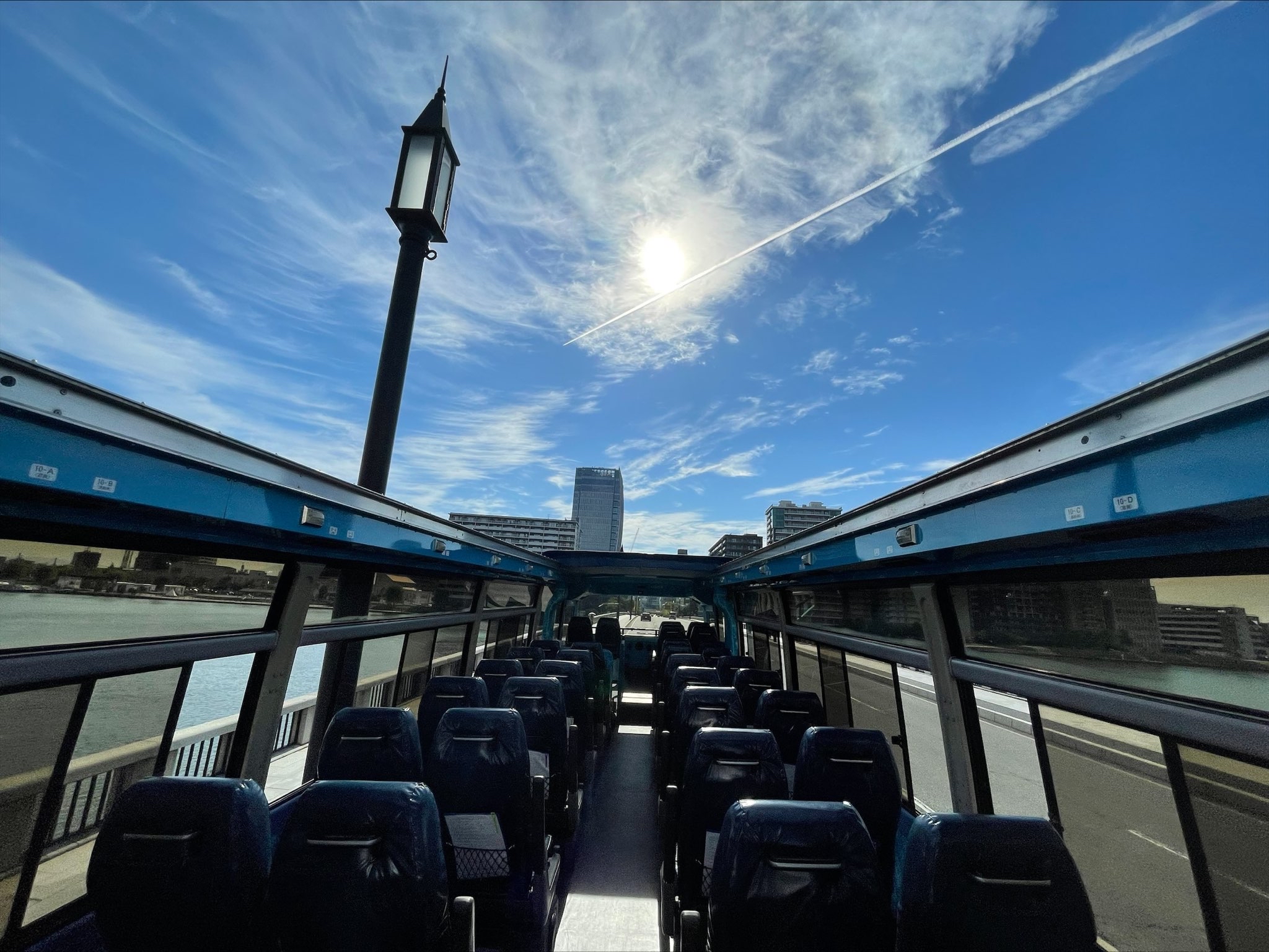 新潟の青い海と空をイメージした宙バスは、屋根の一部を開放したオープントップバスで、日本海側の都市で通年運行するのは新潟が初めて! 座席シートは防水加工が施されているので、小雨でも屋根を開けて走行できます。開放感抜群で、風や音、匂いも感じながら景観を楽しめる、アクティビティ型の観光バスです。「街の息吹を最大限感じてもらう」体験をコンセプトに、新潟市の観光名所や自然を楽しめるツアーコースを季節に合わせて回ります♪